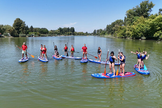 Lerne ein Wildwasserkajak richtig zu steuern. Unser Trainerteam vom UNION Kanu Club zeigt dir verschiedene Schlagtechniken mit dem Paddel. Du wirst merken, dass das Geradeausfahren gar nicht so leicht ist. Mit ein bisschen Übung wird das aber dann kein Problem für dich sein. Den Notausstieg lernen wir natürlich gleich am Anfang der Woche, da die Boote ganz schön wackelig sind und man bei den verschiedensten Spielformen schnell einmal umkippt. Wenn die Grundtechniken sitzen, das simulierte "Kehrwasserfahren" bzw. das richtige Aufkanten des Kajaks kein Problem für dich ist, werden wir uns auch auf das Fließwasser der Donau wagen und einen Paddelausflug unternehmen. Bei vielen lustigen Spielformen im Paddeln mit Bällen und Hilfsmitteln sowie Wettfahrten werden wir dann am Freitag unseren Kajakmeister oder unsere Kajakmeisterin krönen. Preise gibt es natürlich für alle Teilnehmer:innen.