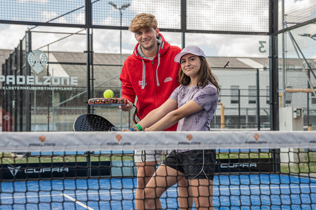 Padel-Tennis ist die neue Trendsportart. Die Mischung aus Tennis und Squash, so gibt es auch hier Glaswände, die in das Spiel miteinbezogen werden, wird immer im Doppel gespielt. Dein Trainer:innenteam erklärt dir die wichtigsten Regeln, gibt dir Tipps und zeigt dir natürlich die richtige Technik. Schon steht einem "heißen" Doppel nichts mehr im Weg. Probiere es aus - du wirst es sicherlich rasch erlernen. Am Freitag kannst du dem Publikum dann zeigen, wie es richtig geht und tolle Preise gewinnen.