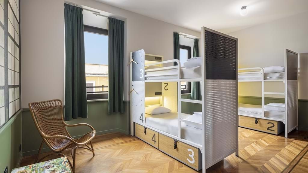 00185 Roma, Via Principe Amedeo 251 (Italien) KarteDas Hostel Generator Rom liegt in einem wunderschönen Gebäude aus dem 19. Jahrhundert, nur ein paar Schritte vom Kolosseum und dem Bahnhof Roma Termini entfernt. Im Inneren ist es wie ein Mosaik aus der römischen Vergangenheit mit 61 aufwendig konzipierten privaten oder geteilten Zimmern mit eigenen Bädern. Es erstreckt sich über sieben Stockwerke und hat ein Feinkost-Café, eine Bar und eine Lounge zum Chillen. Wir schlafen in 5-6 Bett-Zimmern.