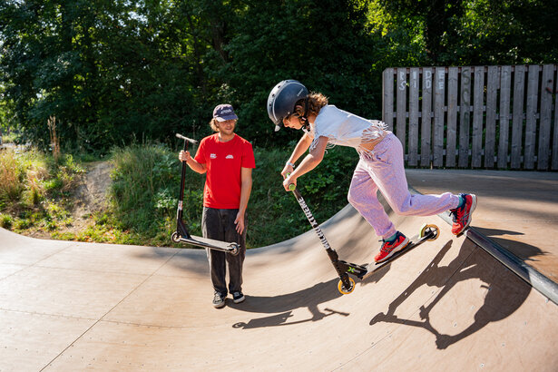 Tretrollerfahren war gestern …Stunt- oder auch Trickscooterfahren ist heute. Schon einmal mit einem Scooter die Stiegen hinuntergesprungen oder einen Heelwhip probiert. Aller Anfang ist schwer, doch wir bieten ein Scootertraining unter professioneller Anleitung. Die Basics sind rasch erlernt und dann wird an den ersten Tricks gefeilt. Schon bald werden wir die Rampen im Klosterneuburger Aupark unsicher machen. Sie bieten, gleich neben dem Happyland gelegen, ideale Übungsbedingungen. Damit du optimal ausgerüstet bist, schenken wir dir einen Skaterhelm. Am besten du bringst deinen eigenen Scooter mit (wir empfehlen die verstärkten Stuntscooter), du kannst dir aber neben der Schutzausrüstung auch einen ausborgen. Zum Abschluss der Woche gibt es einen coolen Contest, bei dem du deine Tricks vorführen kannst. Preise warten auf alle Teilnehmer:innen.